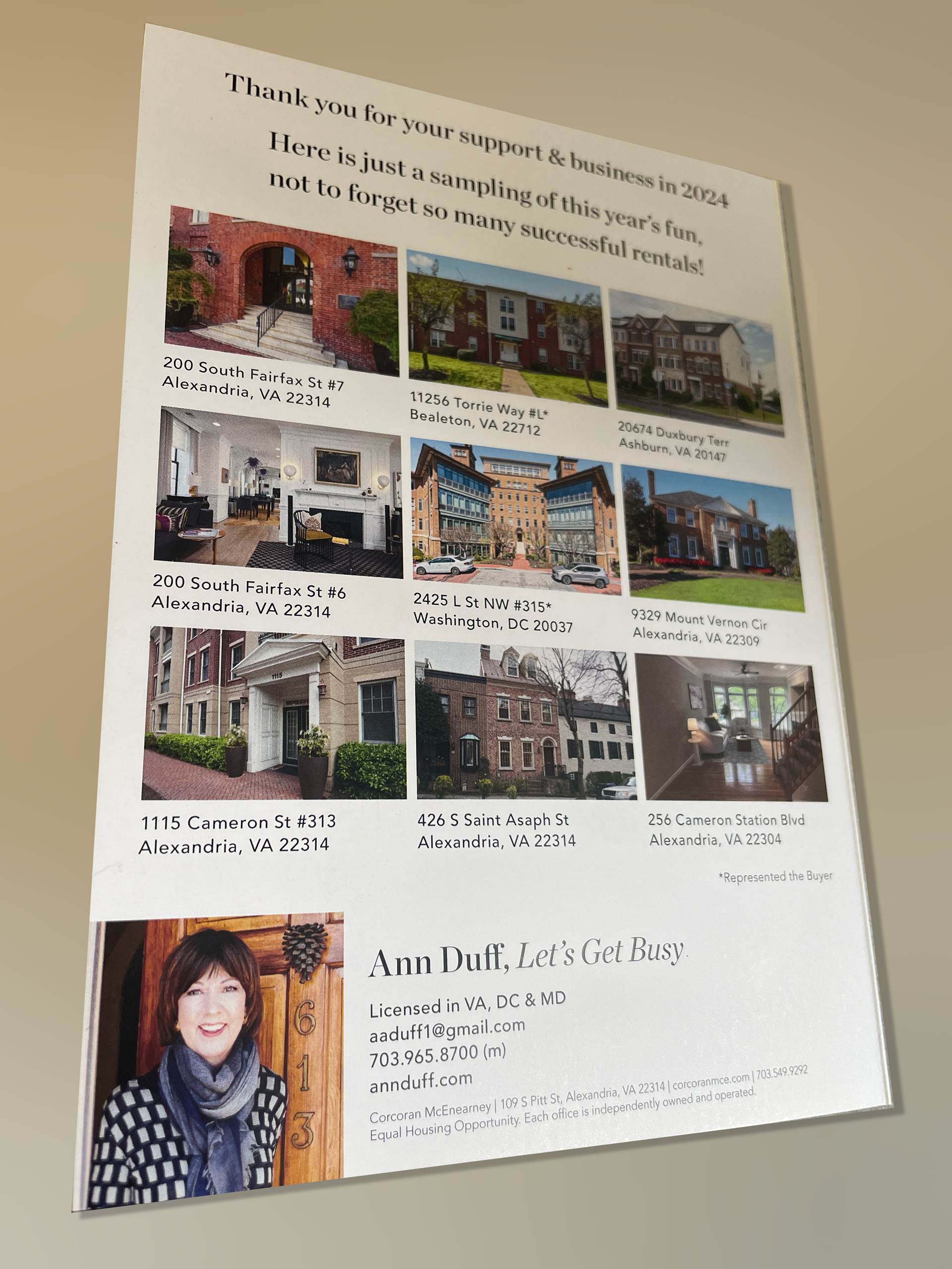 In the nearly two years I spent at the Alexandria office of Corcoran McEnearney (formerly McEnearney Associates), I designed a huge variety of print and digital marketing materials for a large percentage of the office's over 120 realtors.