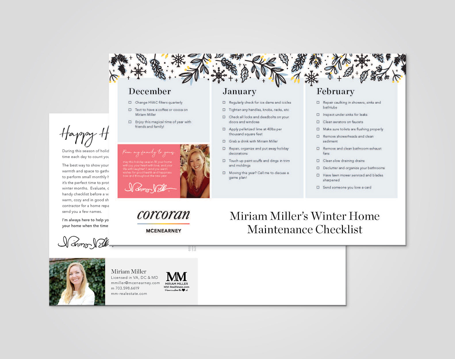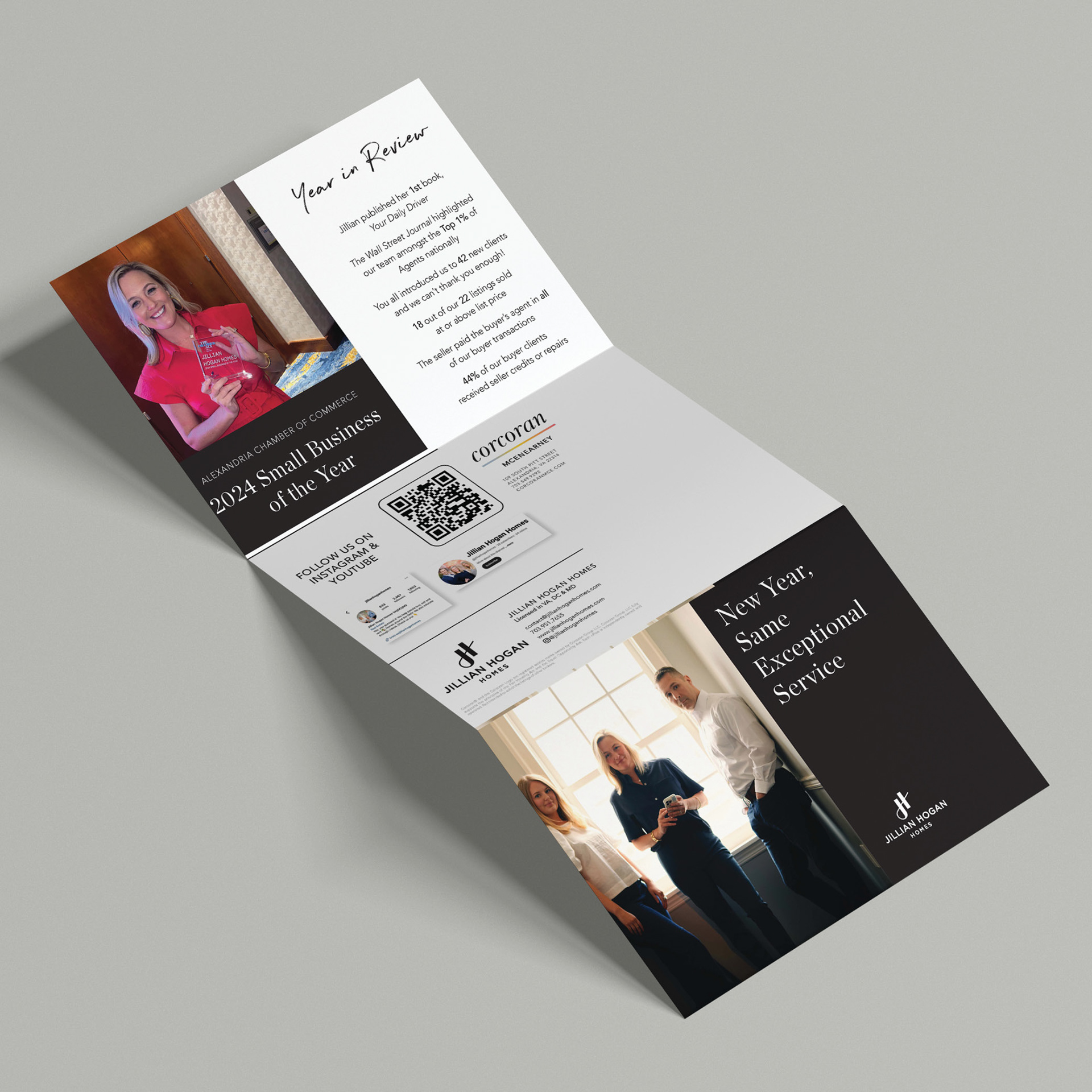 In addition to designing direct mail postcards for our agents, I also worked with some of our agents in to create special mail pieces to recap their years, look towards the next, and update their clients on their business.