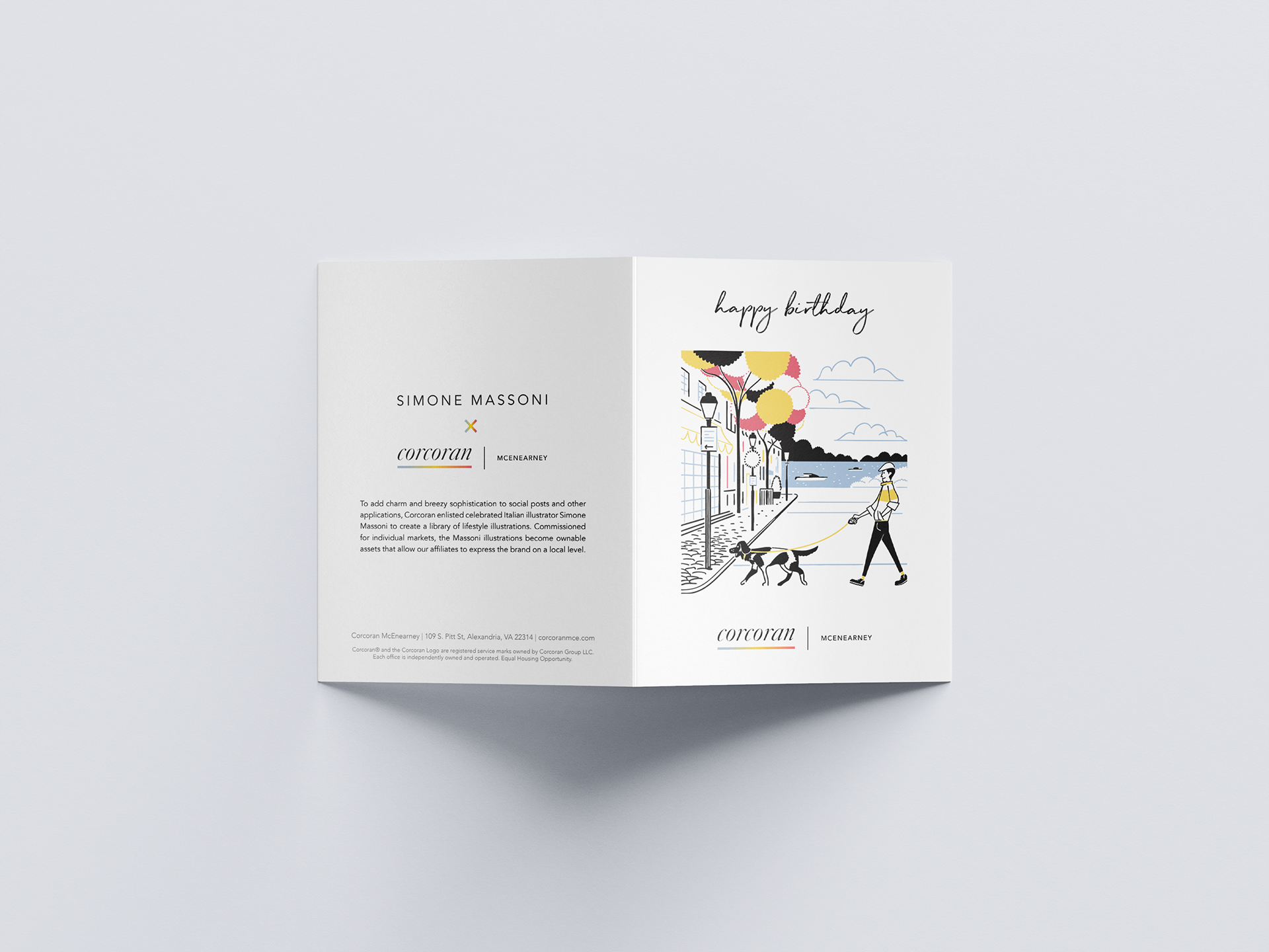 In addition to working on projects for the agents in the Alexandria office, I also worked on a few corporate projects during my time with Corcoran McEnearney. Below is a greeting card I designed to highlight the company's partnership with Simone Massoni and an ad I designed for the back of Alexandria Living Magazine.