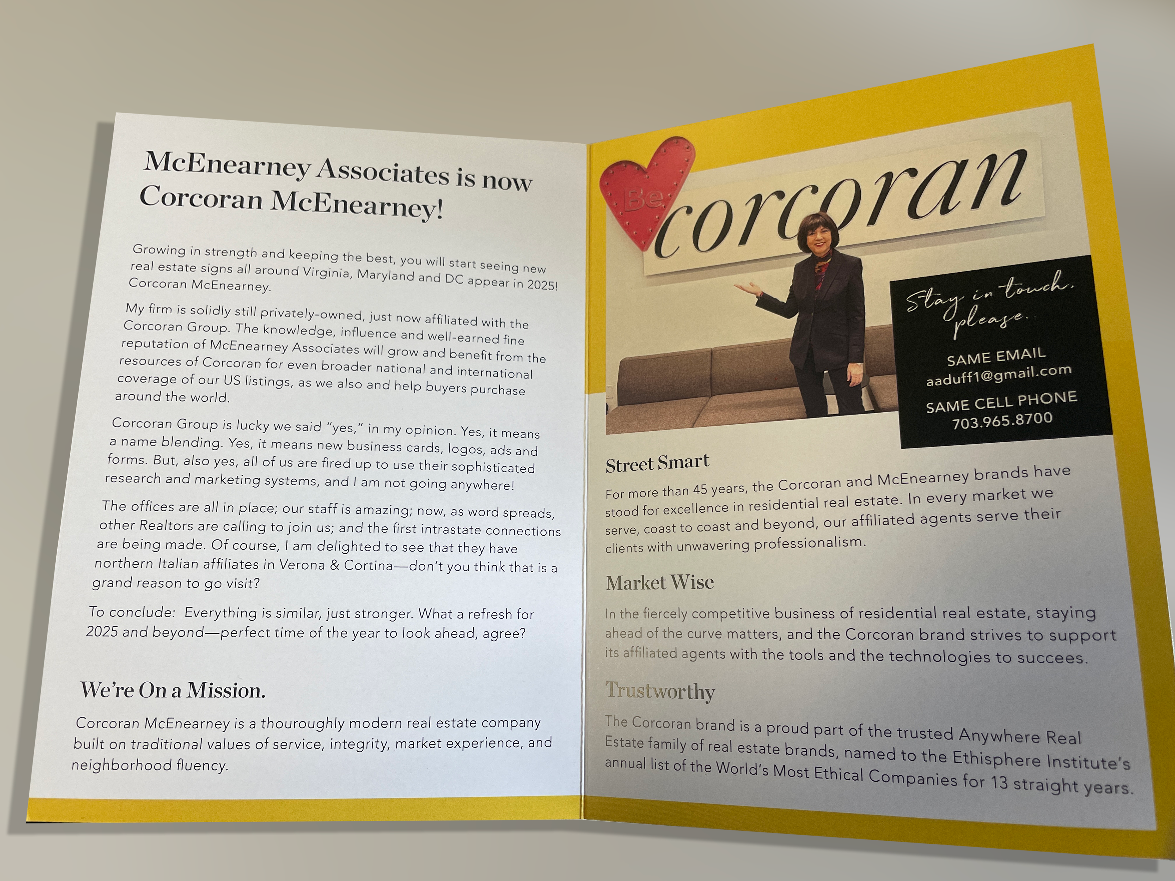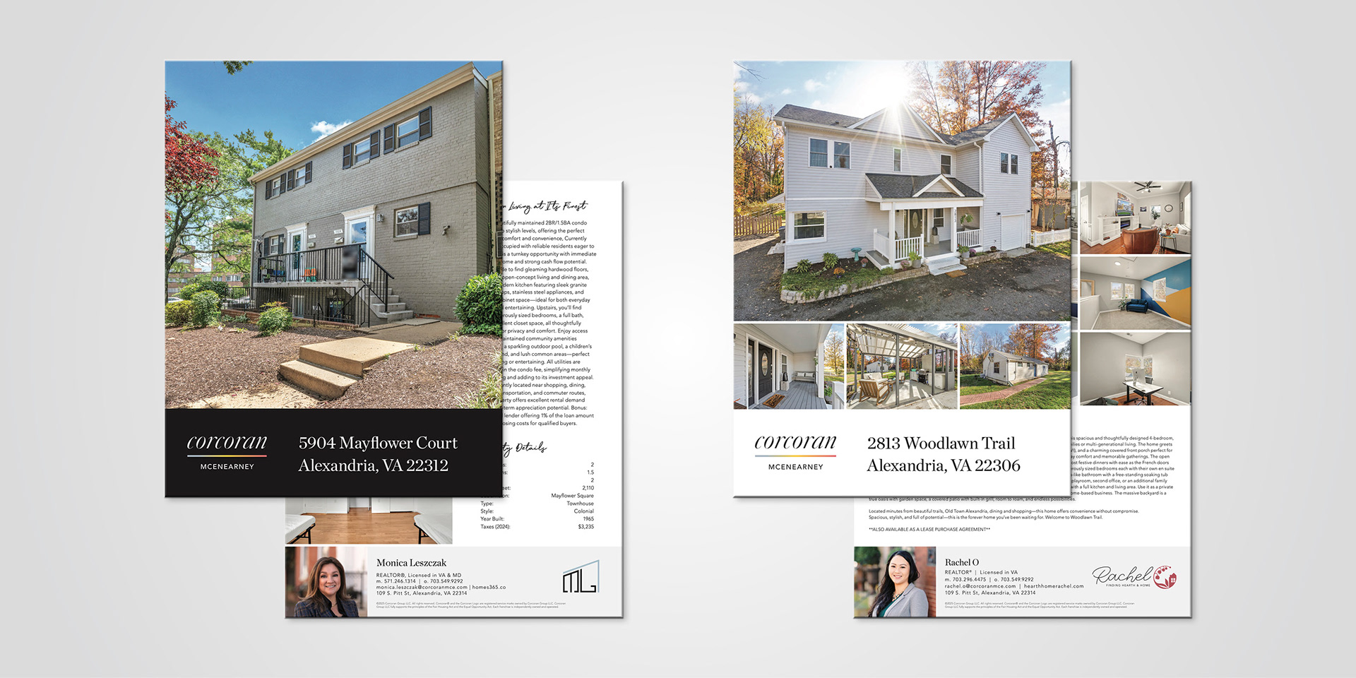 In the middle of my time there, McEnearney Associates affiliated with the Corcoran Group to become Corcoran McEnearney. Through this change, I was able to learn the ropes of a new brand and help our agents transition their visual identities from one brand to the other.