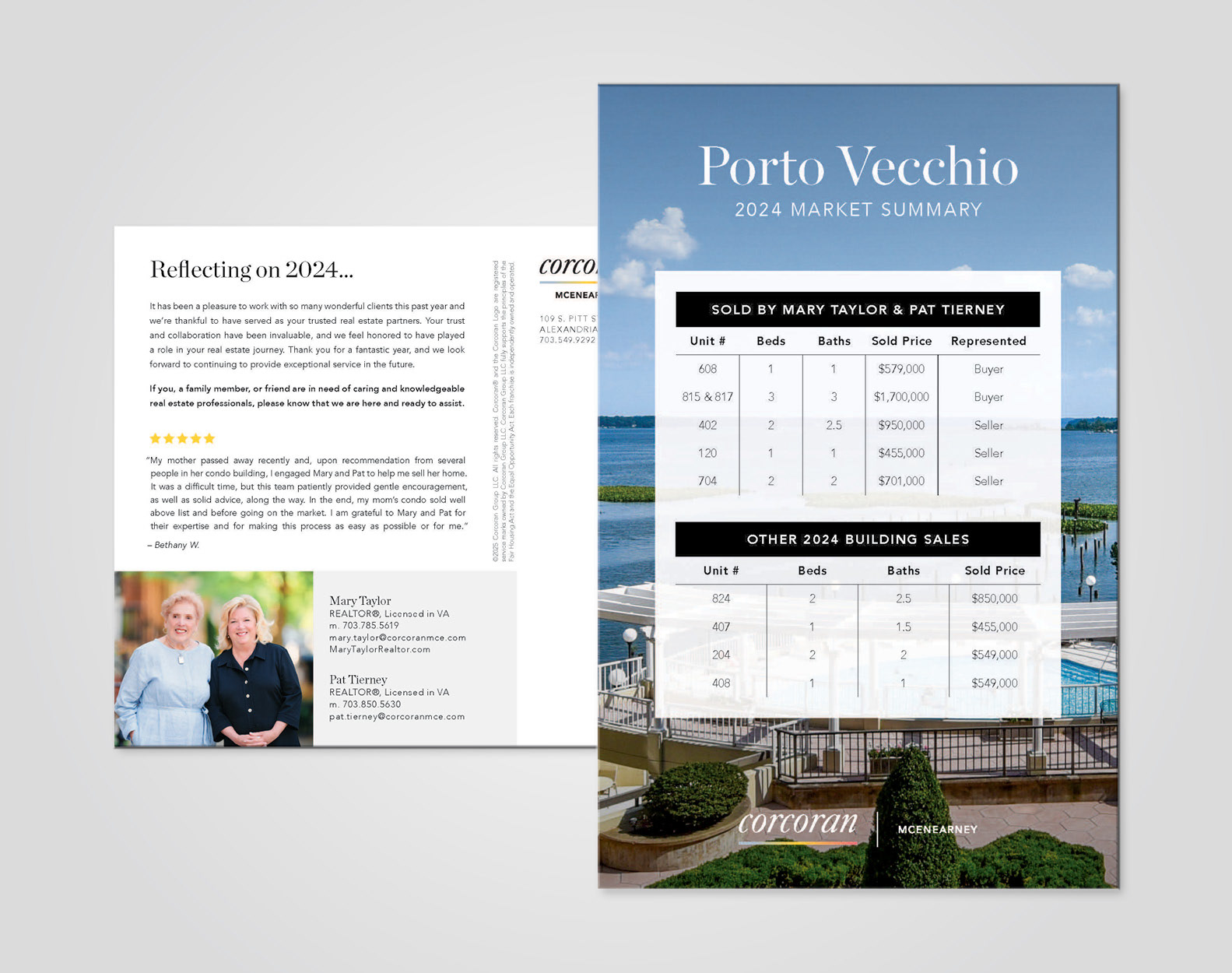 One of my favorite parts of my job at Corcoran McEnearney was being able to create visual identities for our agents within the greater company brand. In this section, you can see some examples of custom branding pieces I designed to help agents differentiate themselves while staying within the corporate brand.