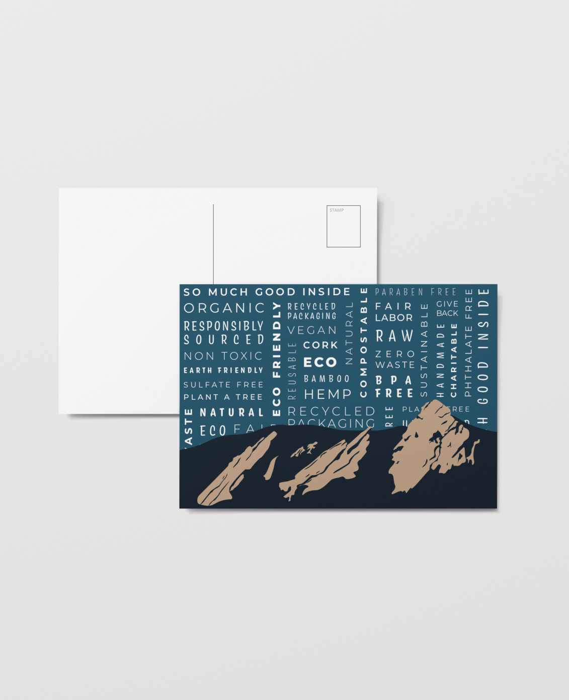 The final projects I worked on at EarthHero were layouts for business cards and postcards featuring the Boulder Flatirons and the values held by the company.