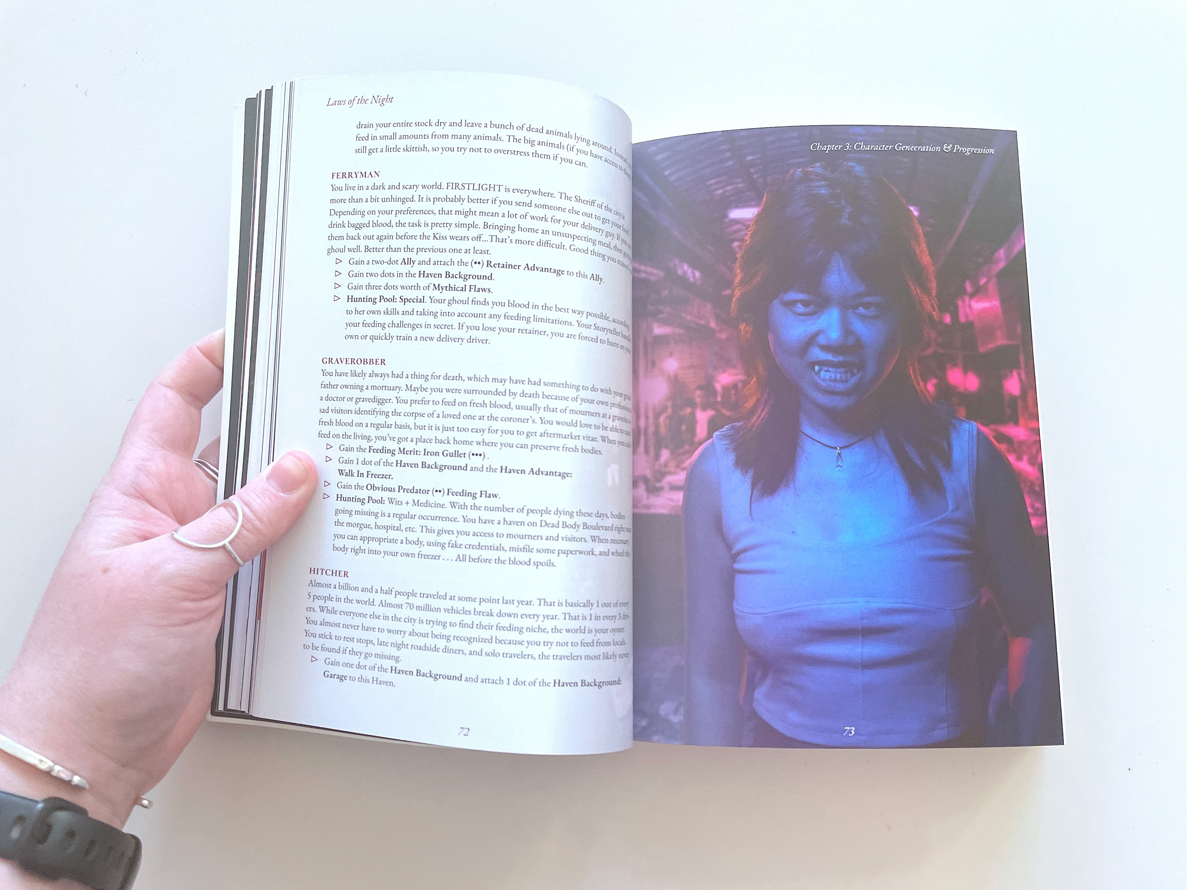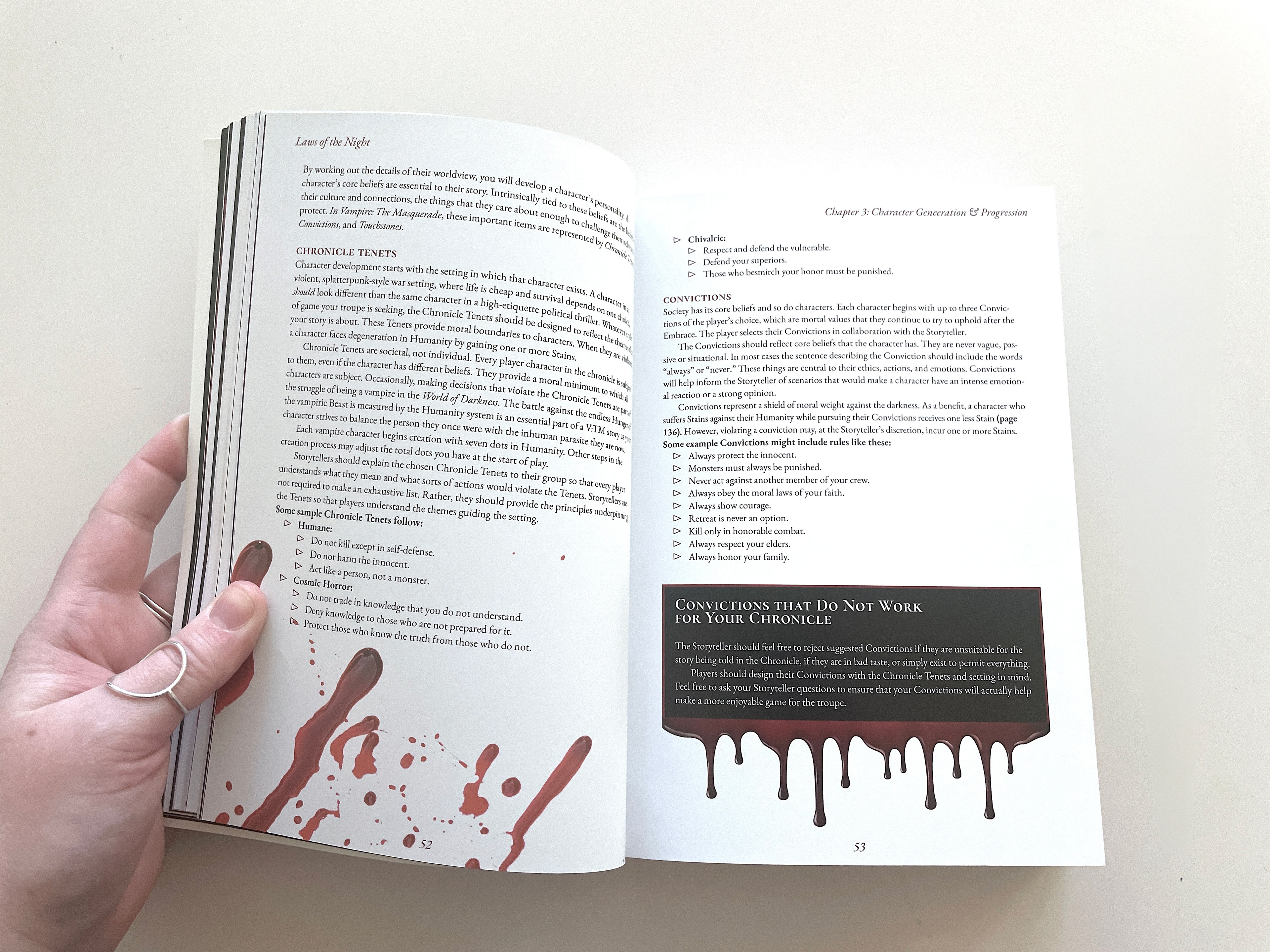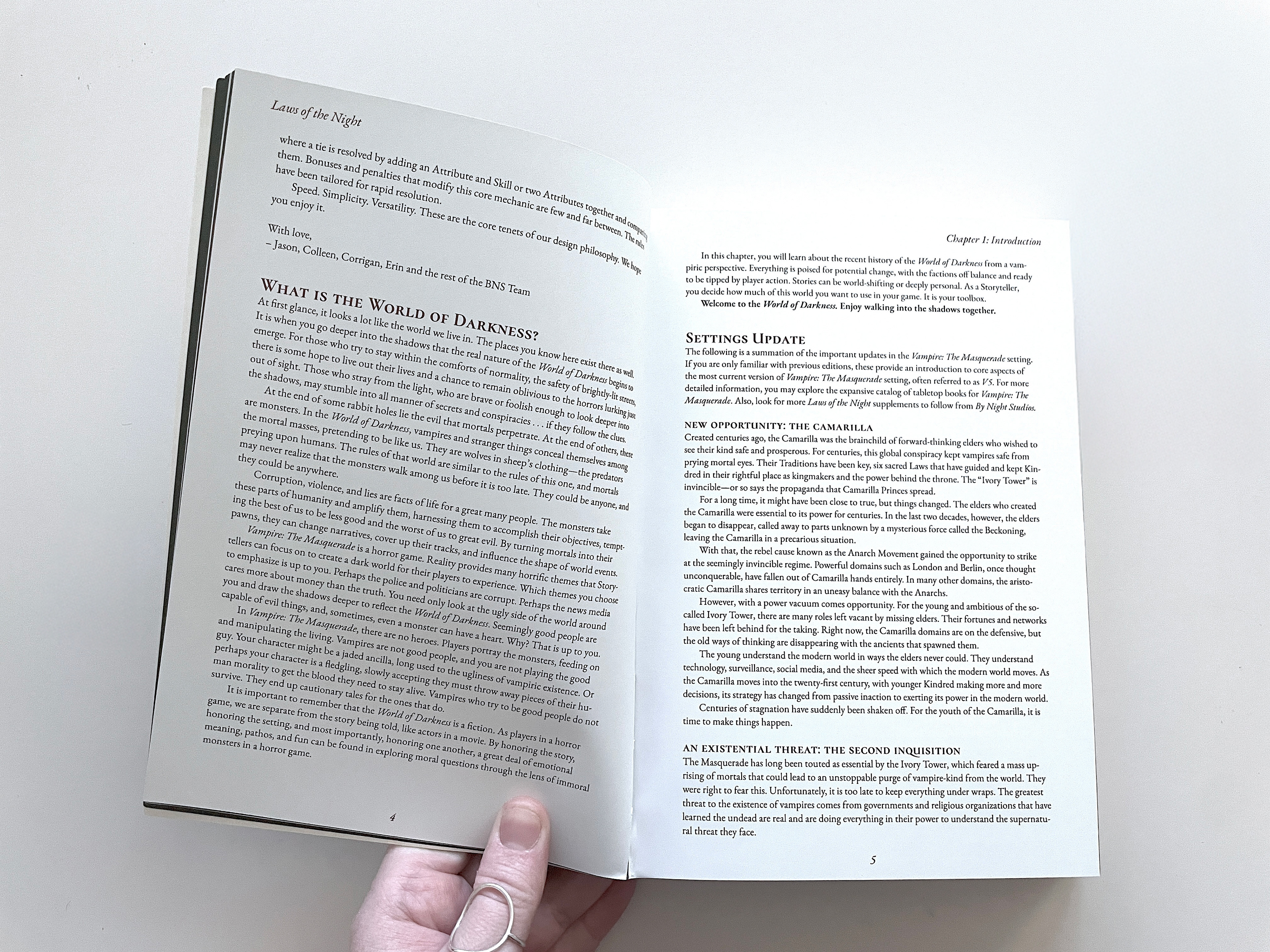 My largest freelance project to date was laying out 2 versions of By Night Studios' 2023 release of Laws of the Night, a live action role play system for Mind's Eye Theatre - Vampire: The Masquerade. I was responsible for laying out the interiors of both deluxe and pocket size versions of the book; along with clickable, hyperlinked PDFs of both, and a PDF Quick Start Guide.