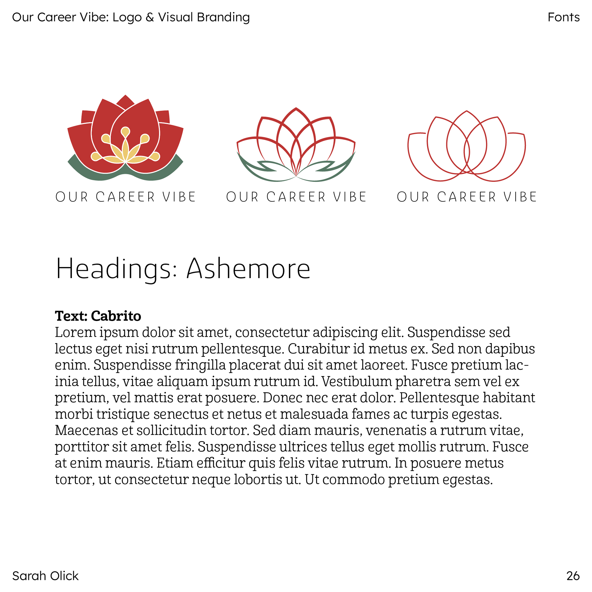 Gabby selected Option 2 for her logo. The following images show different style iterations. Each version used the same color scheme and type system, but I applied different line and fill styles to each.