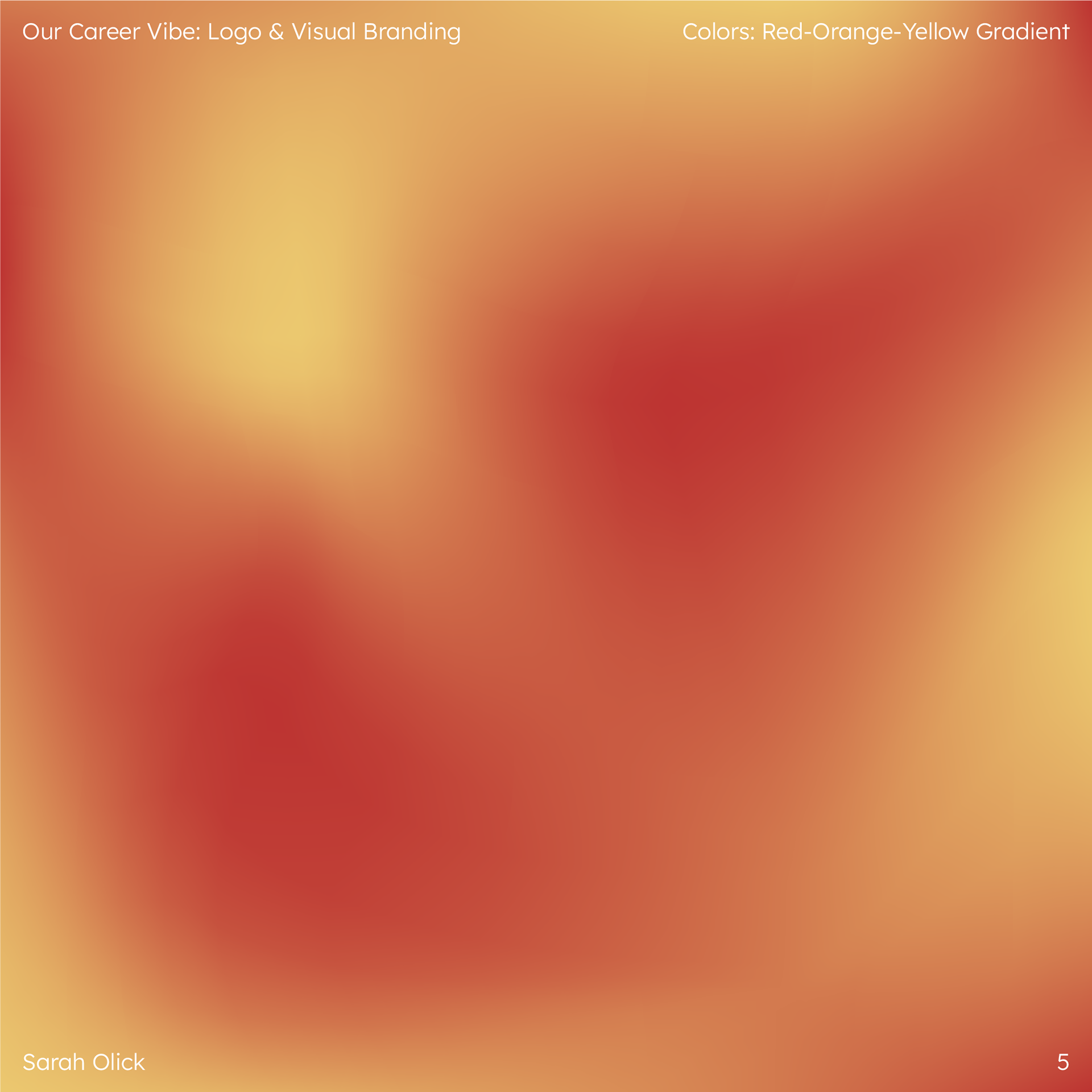 The following images show the color scheme and background gradient I built off of the provided red and yellow, as well as the final type system shown with potential stylized logo options.