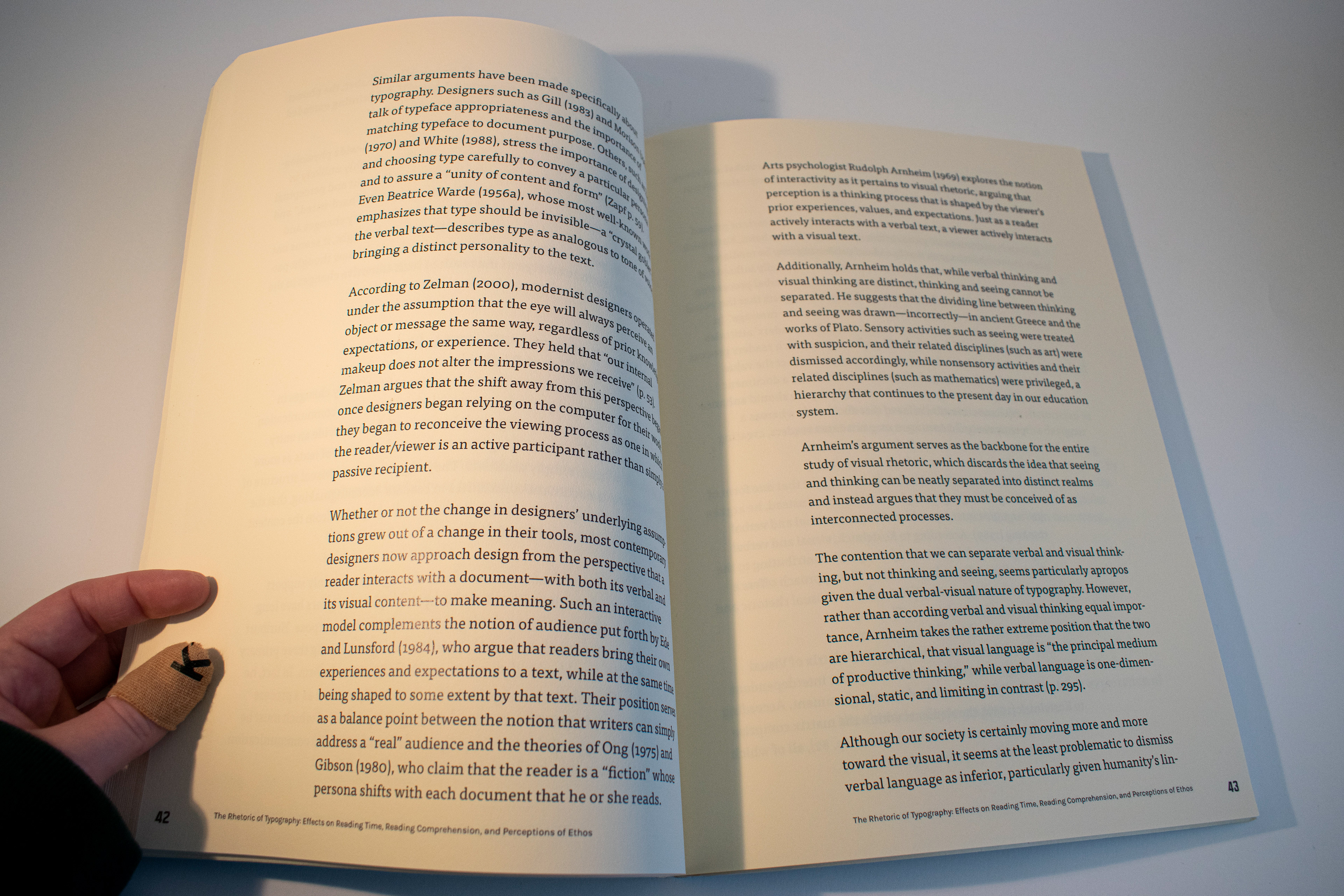 Readability, Accessibility, Typography is a collection of 12 articles19 related to the topic of accessible typography. I seriously considered accessibility when choosing typefaces and made the careful selection of Tisa Pro and Politica for this 143 page book.
