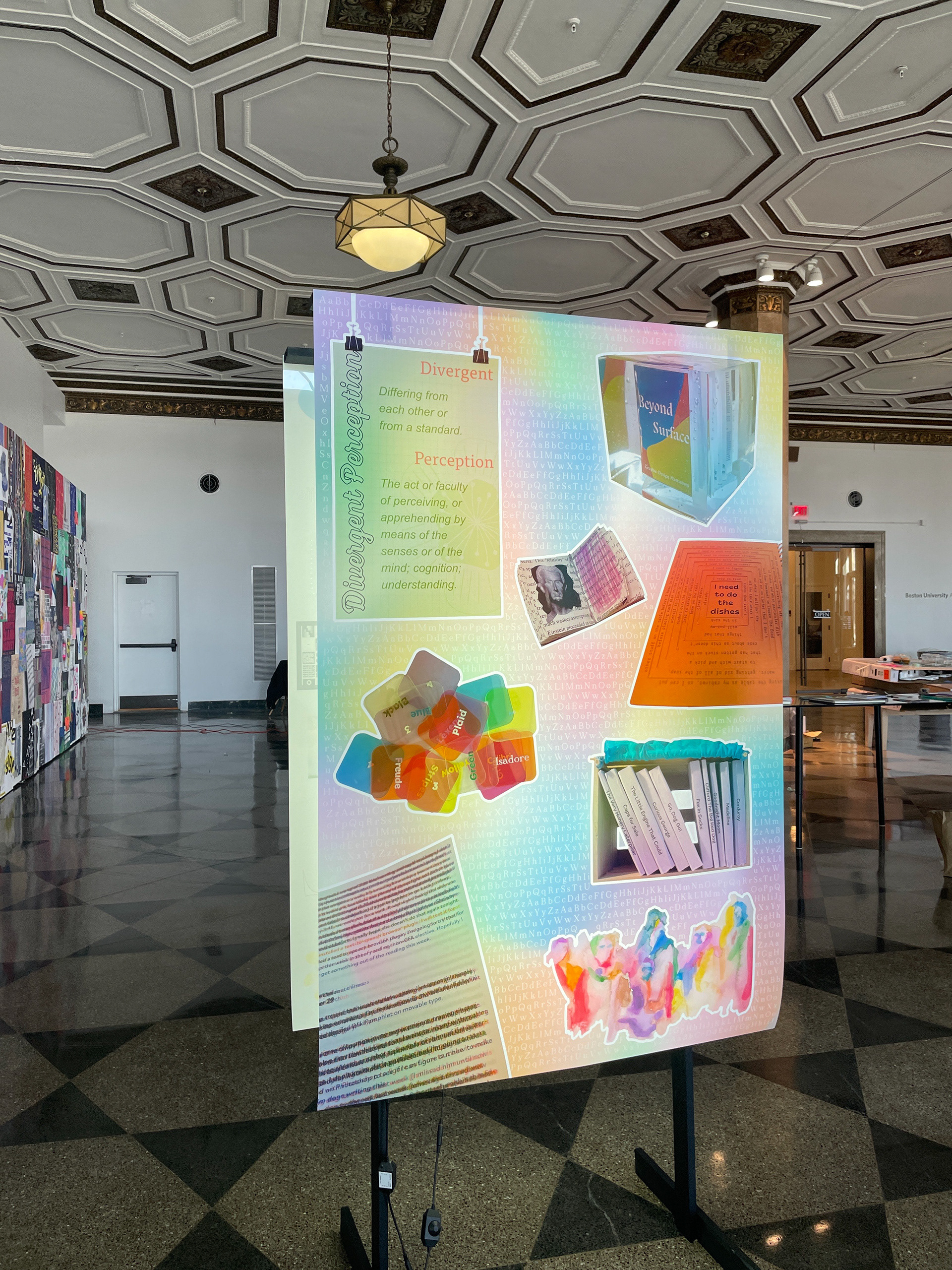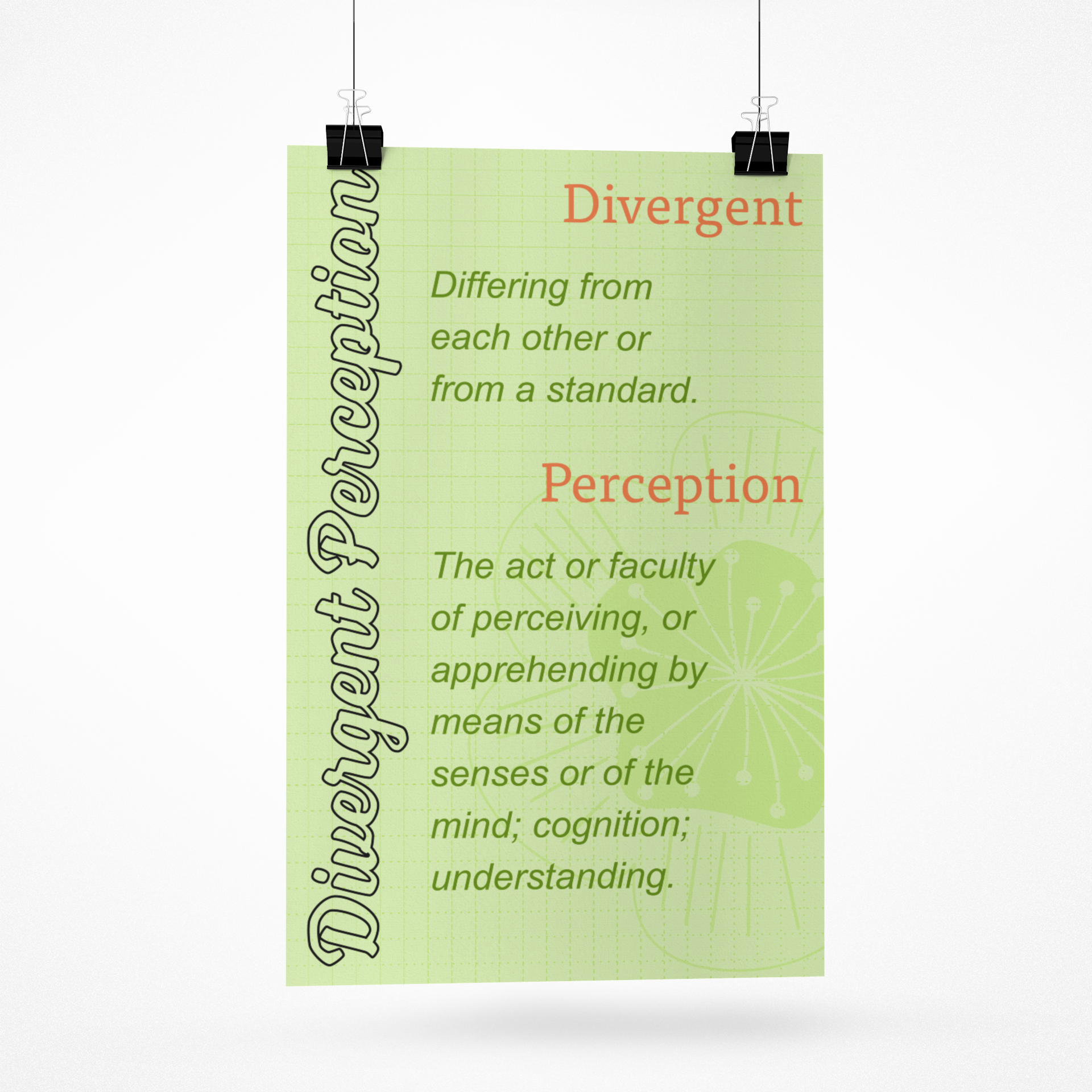 My thesis, Divergent Perception, looks at the perception and practice of graphic design from a neurodivergent point of view. Through my body of work, I questioned the typical academic need for deep symbolism in design and argued for accessibility and functionality while exploring my own methods and practices.