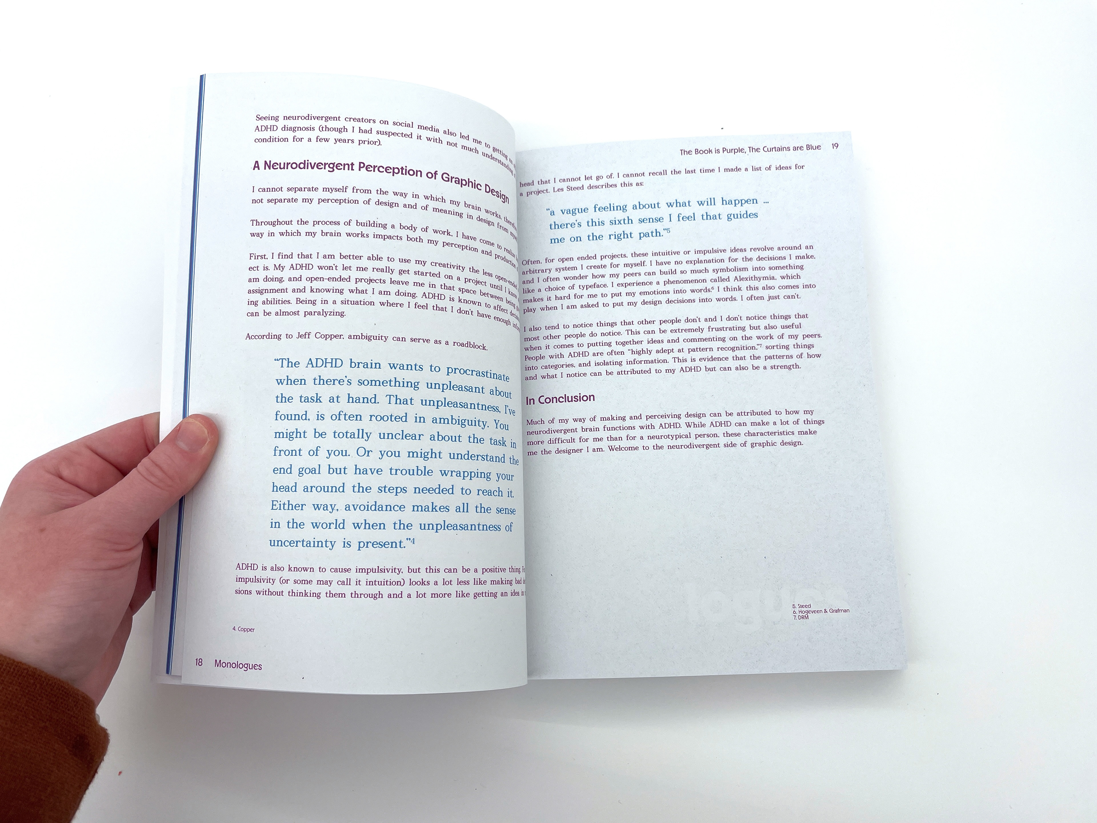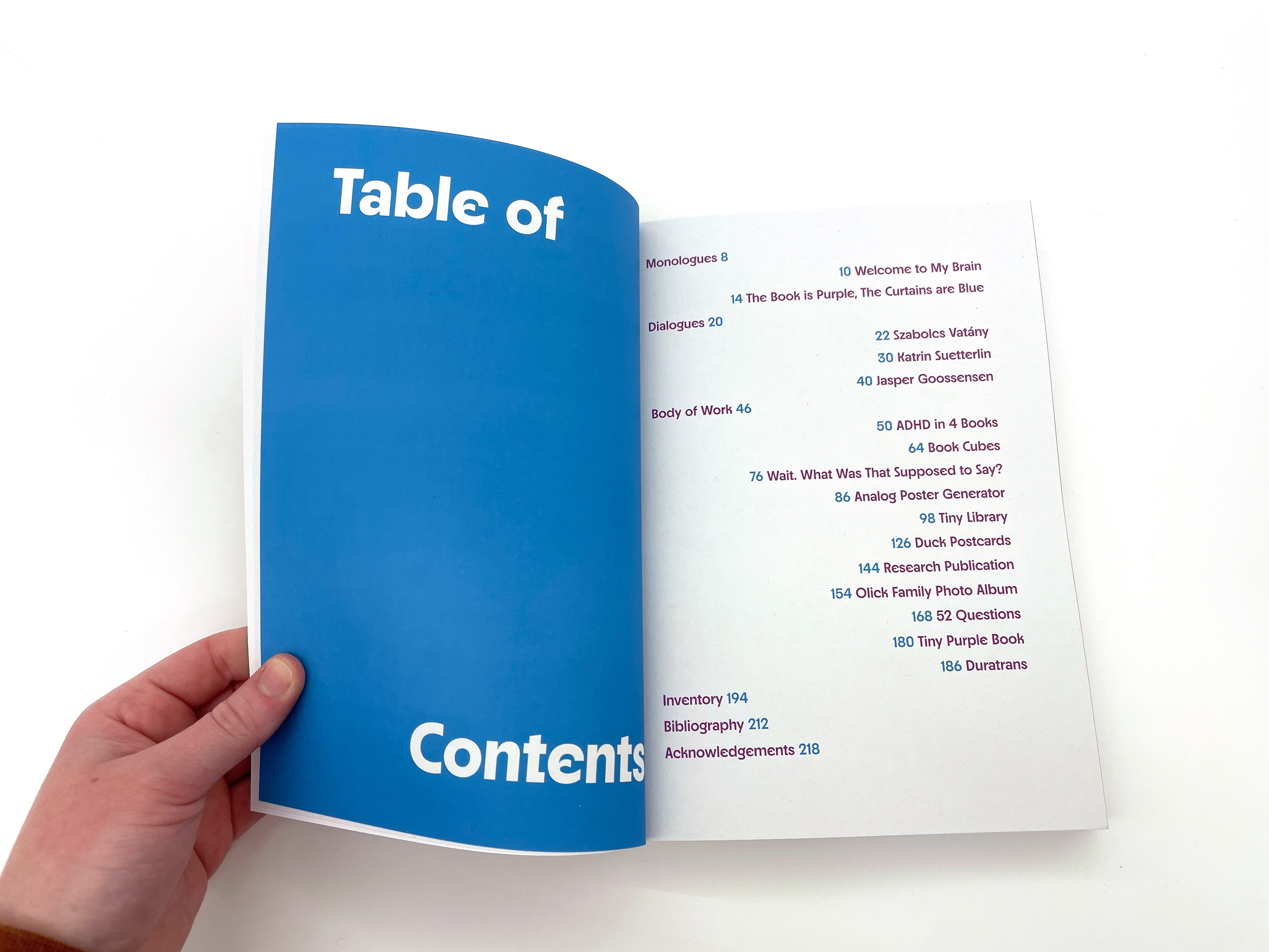 In my 220-page book I presented eleven projects that explore my own perception of the world as a neurodivergent designer and that detail my own design methodology.