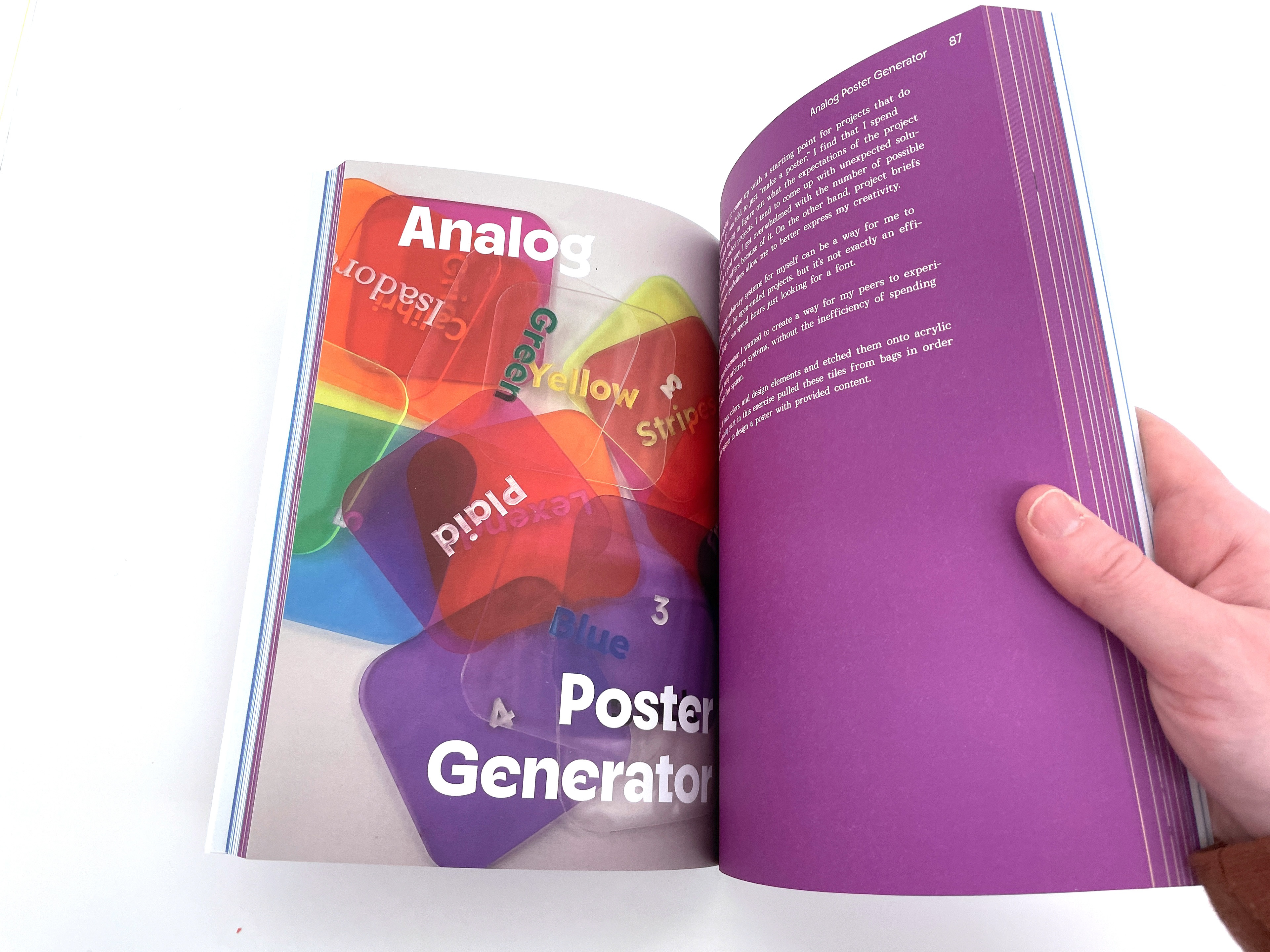 The Graphic Design MFA Thesis at Boston University takes the form of a body of work that serves as an active inquiry into how design articulates the student's unique perspective on themselves and their place in the world of design. It involves the production of knowledge through graphic design and is ultimately compiled into a book and web page.