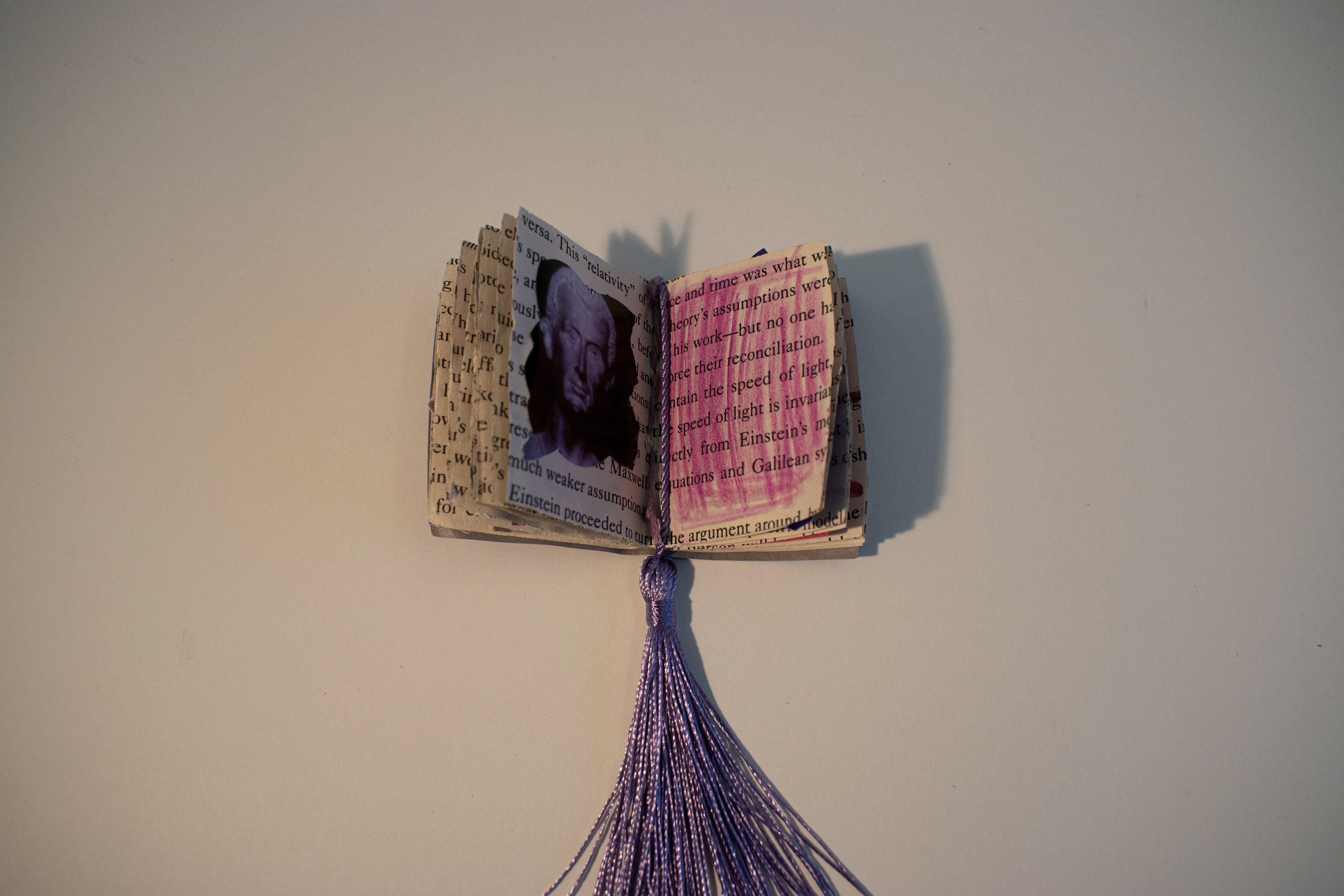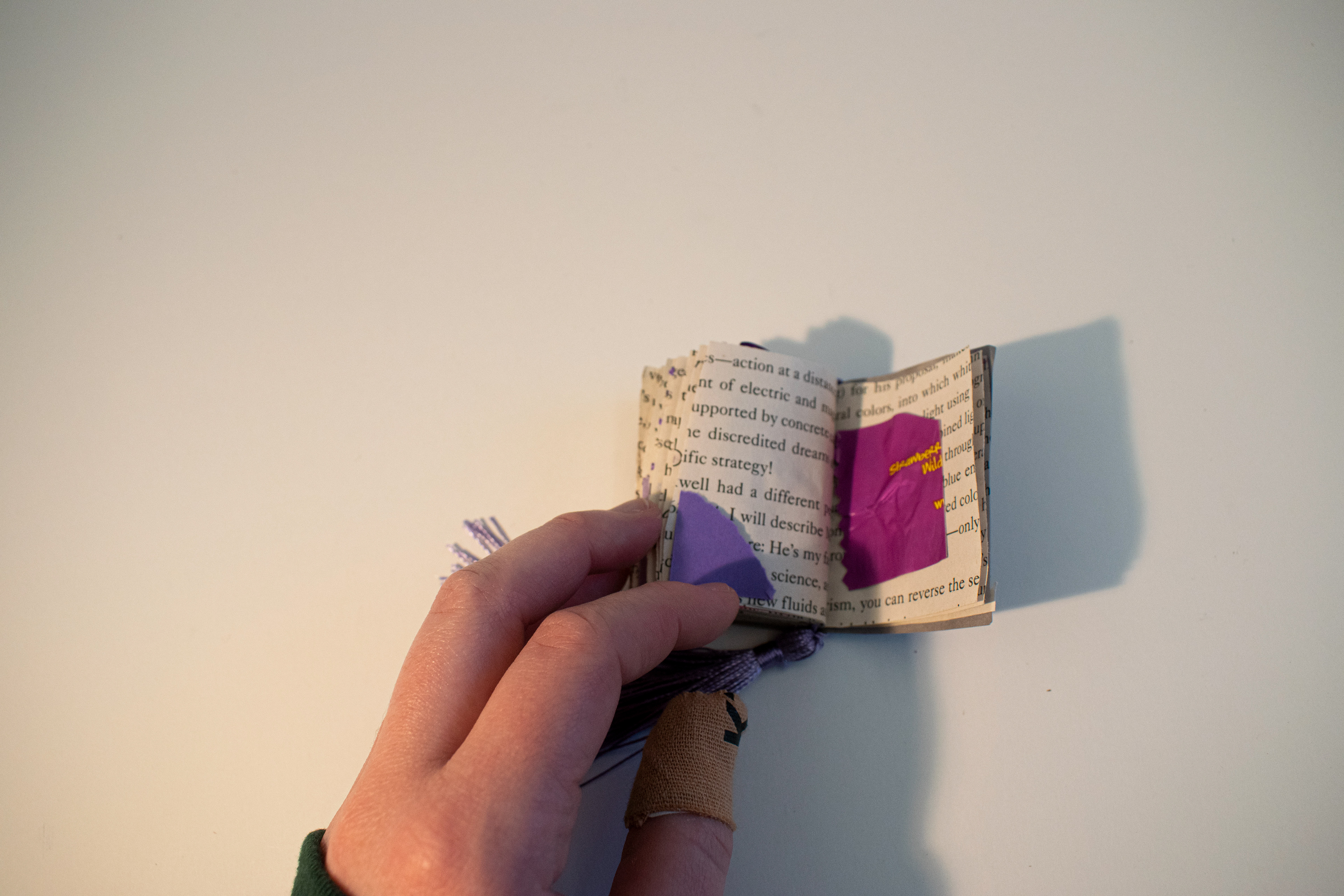 This is a tiny, unreadable, purple book I made in my non-CFA class, Arts and the Community. The class is on community arts initiatives and, last week, the professor made the point that we hadn’t actually made any art in this class, gave us a bunch of art supplies, and let us go wild with a very loose prompt of “a mind map book.” Without even thinking about it, I started cutting up pages of an old book that she put in the pile of supplies and collecting every random purple item I could find: purple paper, purple thread, purple wooden hexagons, purple buttons, purple images from magazines, purple colored pencils, purple watercolor paint, and more. I got really positive feedback from my classmates. Greg, the 60-something-year-old classically trained painter said it was beautiful. Sometimes the book is just purple.